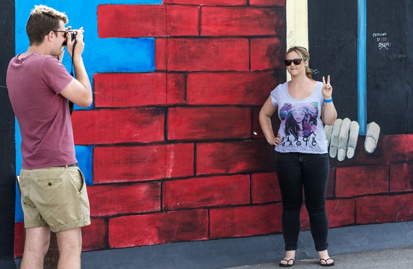 Der rund 160 km lange Berliner Mauerweg kennzeichnet den Verlauf der ehemaligen DDR-Grenzanlagen rund um West-Berlin. Die Fotostrecke dokumentiert Sehenswertes entlang der ehemaligen Grenzbefestigung, die angedeutete Mauerführung am Potsdamer Platz und vor den Regierungsgebäuden, das bunte Treiben im Mauerpark mit Kletterwand, Mountainbikern auf einem Parcours, die East-Side-Gallery, Gedenktafeln, Touristenrummel am Checkpoint Charlie u.v.m.