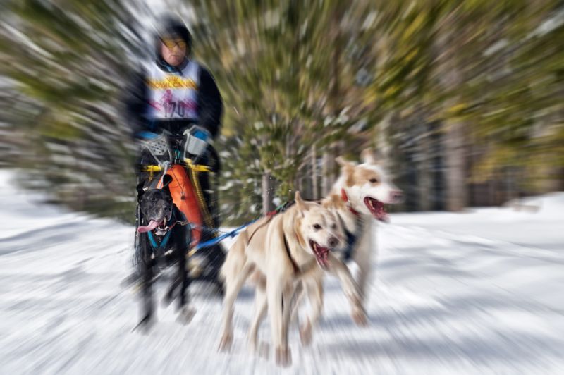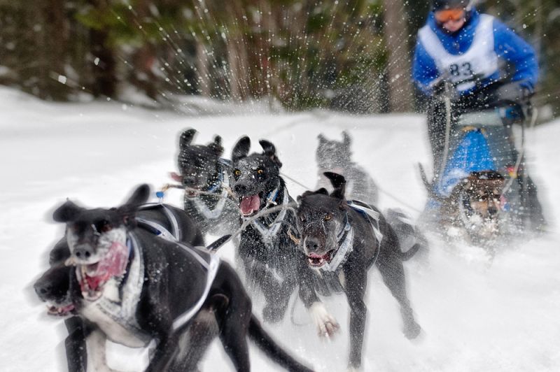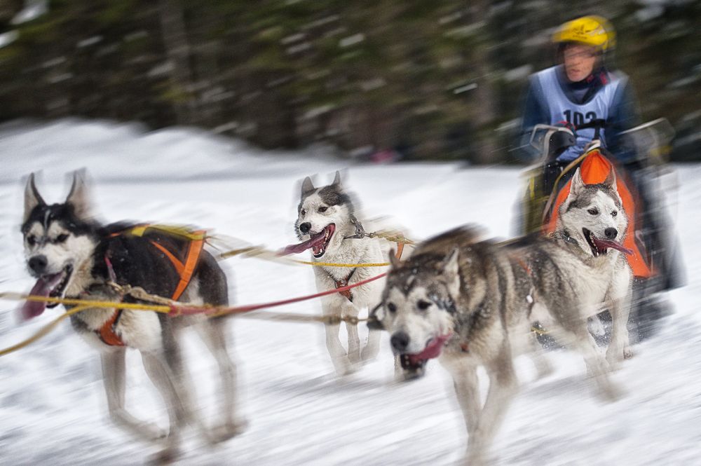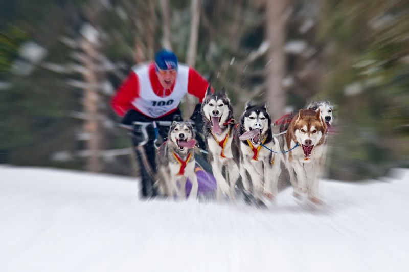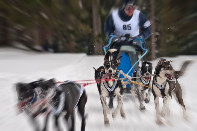 Schlittenhunderennen und Husky-Porträts