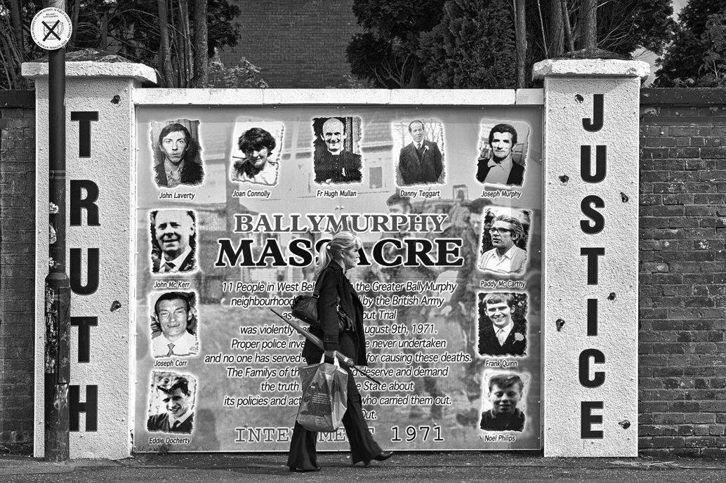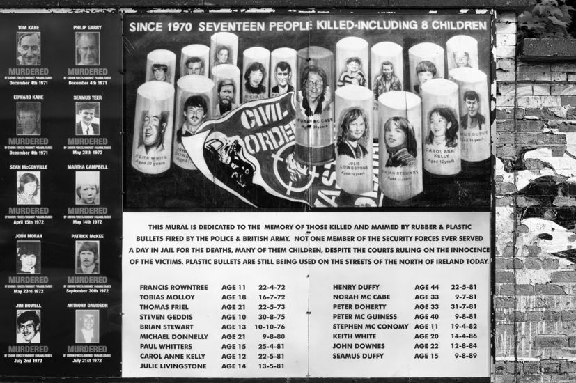 Eine Fotodokumentation in Erinnerung an den „Bloody Sunday“ und an den Freiheitskampf der Katholiken gegen die britische Administration. Aufnahmen von Bogside, einem Arbeiterstadtteil von Derry und von der Demarkationslinie zwischen den protestantischen und katholischen Wohngebieten in Belfast. Geteilt von einer hohen Mauer werden die Stadtteile bei bestimmten Anlässen zusätzlich durch massive Eisentore voneinander getrennt.