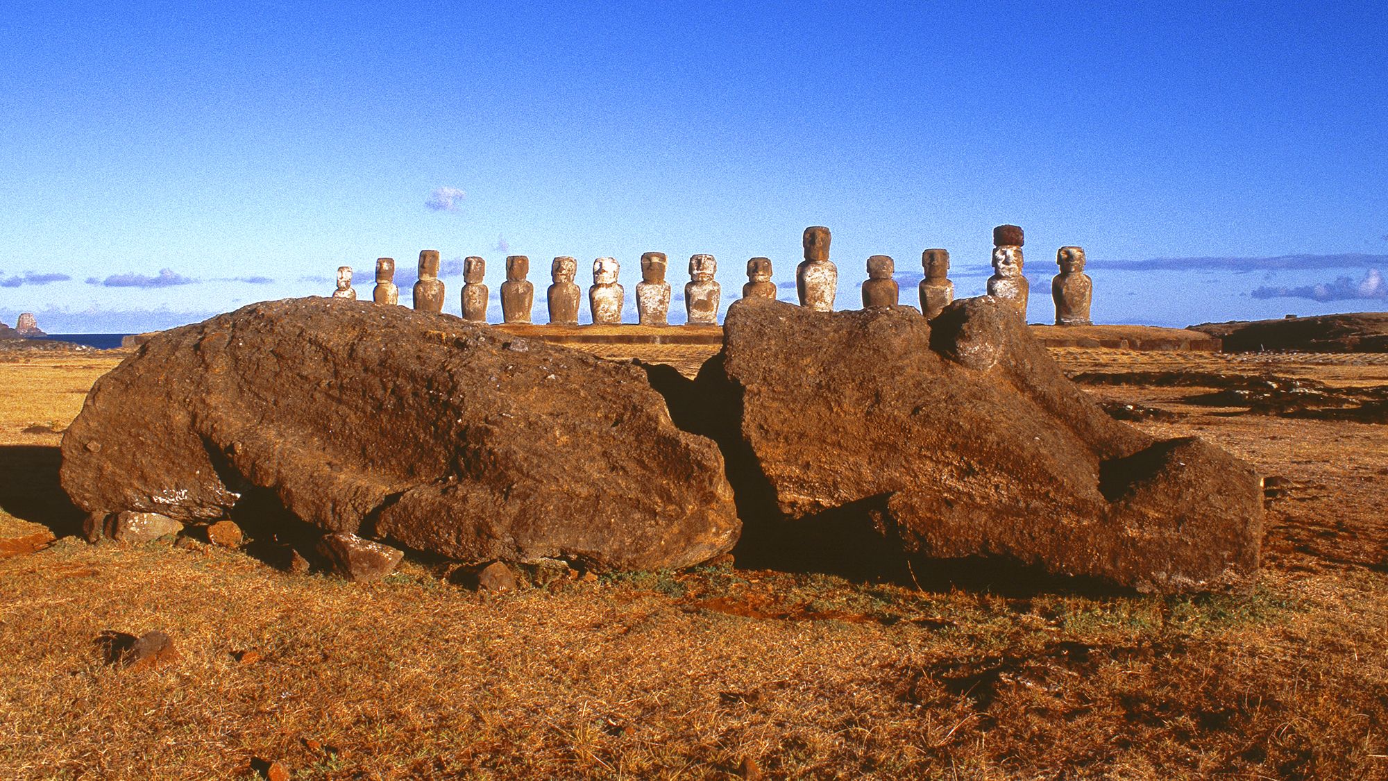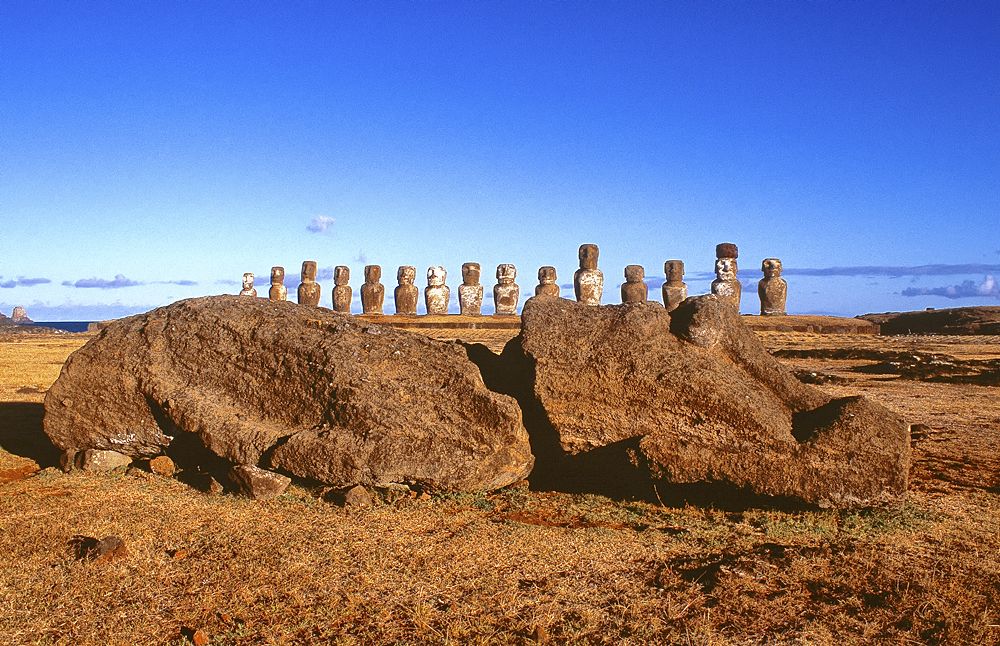 Die geheimnisvollen und rätselhaften Kolossal-Figuren, erschaffen mit primitiven Mitteln durch längst ausgestorbene Ureinwohner. 4000 km entfernt von Chiles Festland, auf der kleinen Insel in Polynesien.