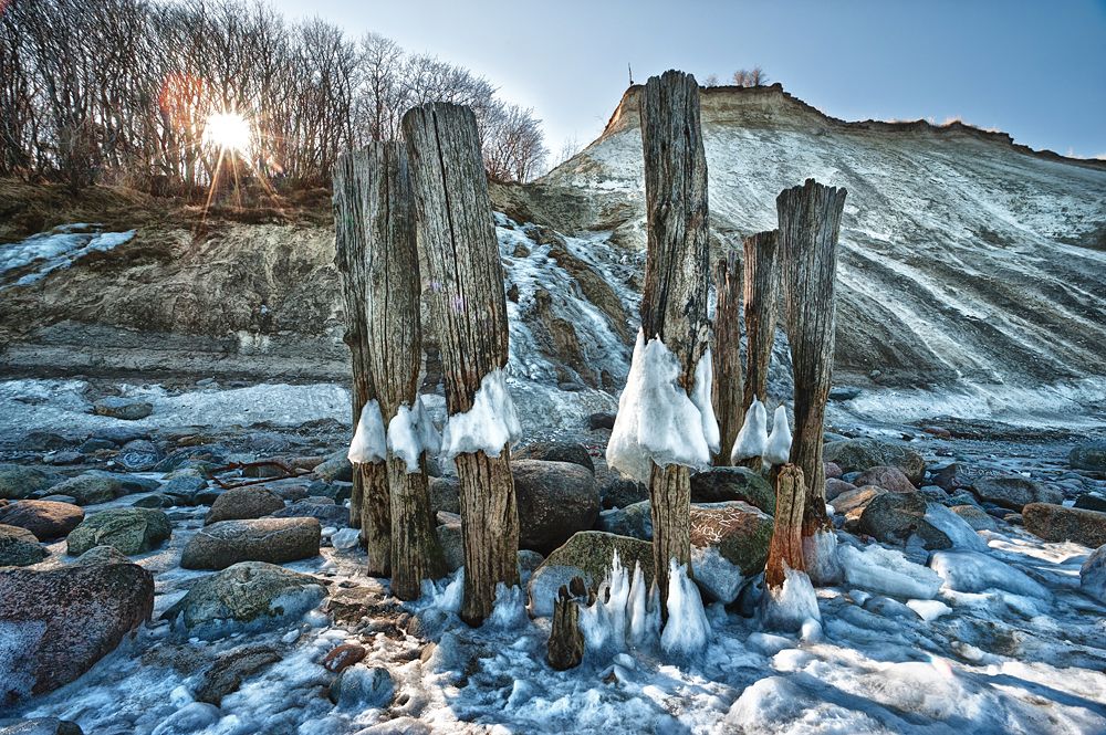 Die Ostseeküste der Inseln Rügen und Usedom im Winter.
